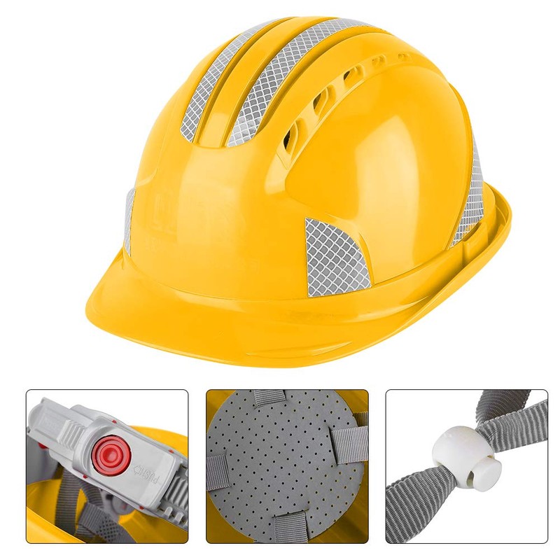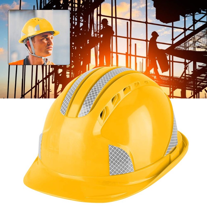 Safety Helmet, Worker Construction Site Protective Ventilate ABS Hard Hat Reflective Stripe Helmet(Yellow)