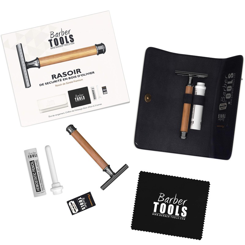 Safety Razor + 5 Double Blades + Polishing Cloth + Storage Bag ✮ BARBER TOOLS ✮