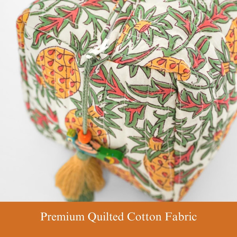 - Premium Quilted Cotton Fabric - Crafted with high-quality quilted cotton fabric, these makeup bags offer a soft, durable, and stylish solution for storing your essentials. The floral block printed designs on this makeup organizer bag add a touch of elegance to your travel accessories.
