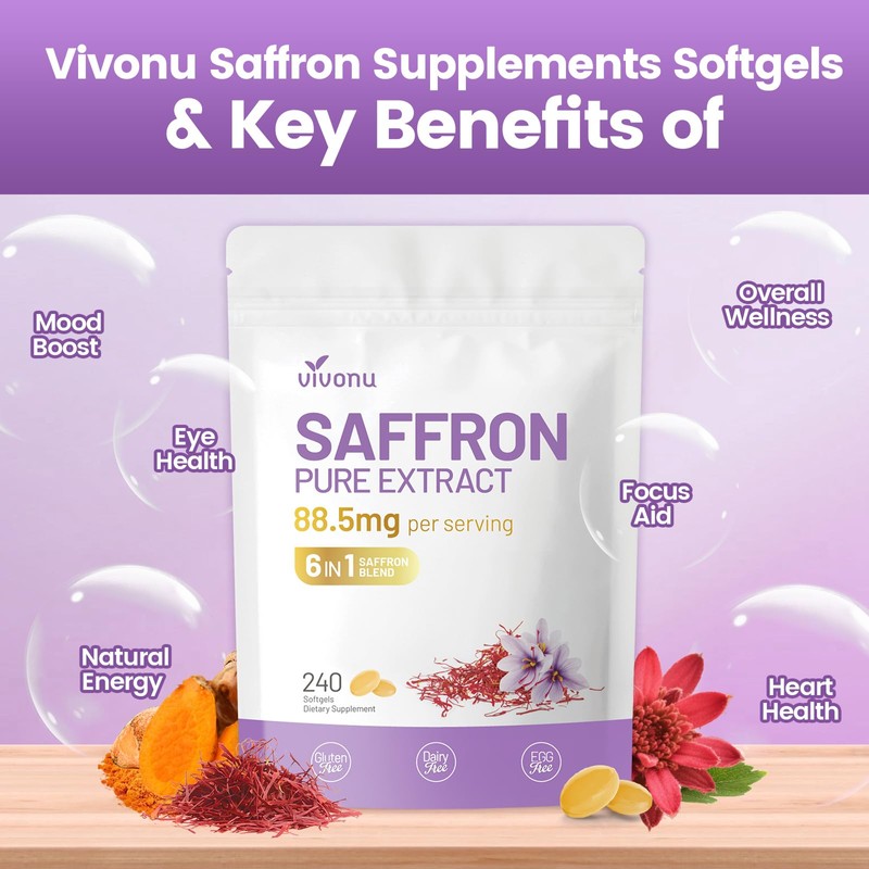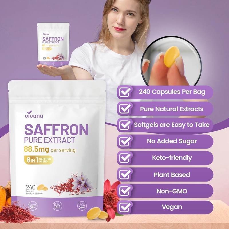 • 【Softgels with Saffron Supplements 6-IN-1】Made with 100% pure saffron, our softgels provide a great source of vitamins. Vegan-friendly, free of GMOs, gluten, soy and artificial additives.