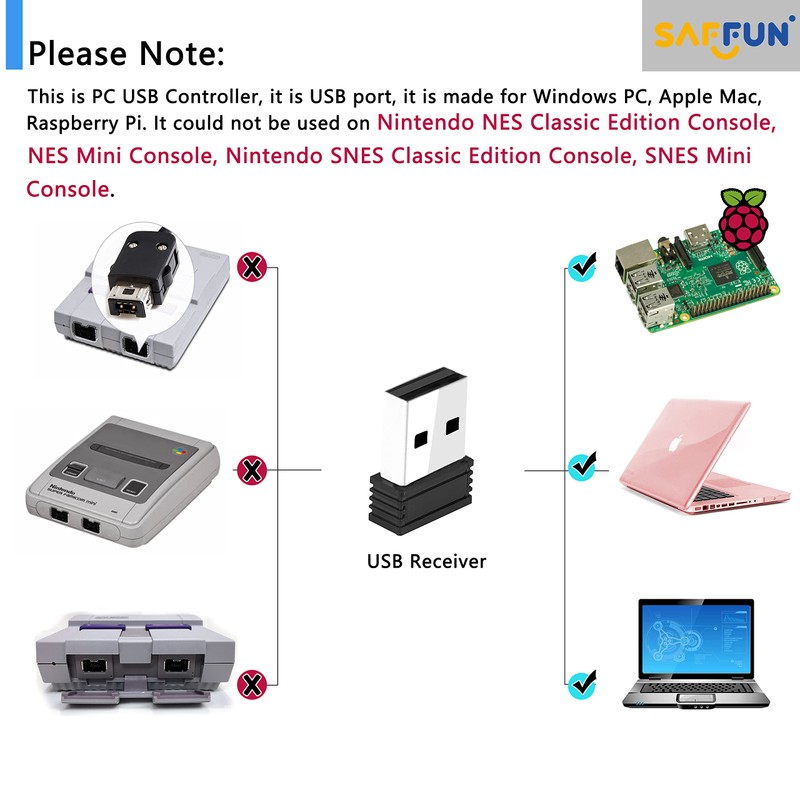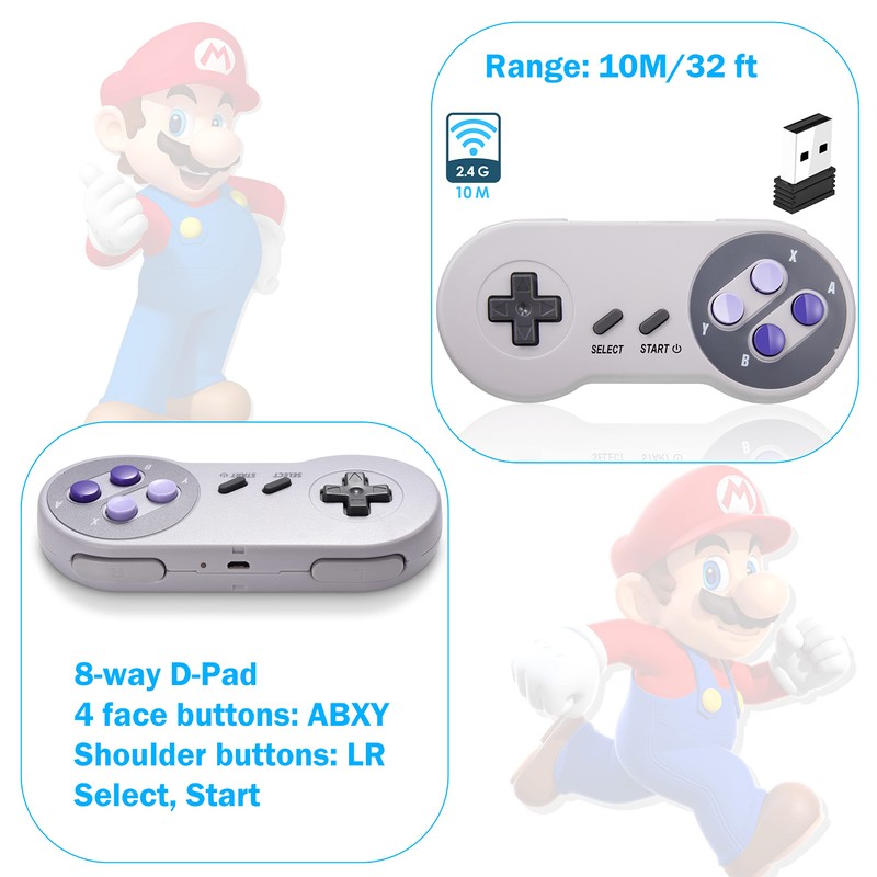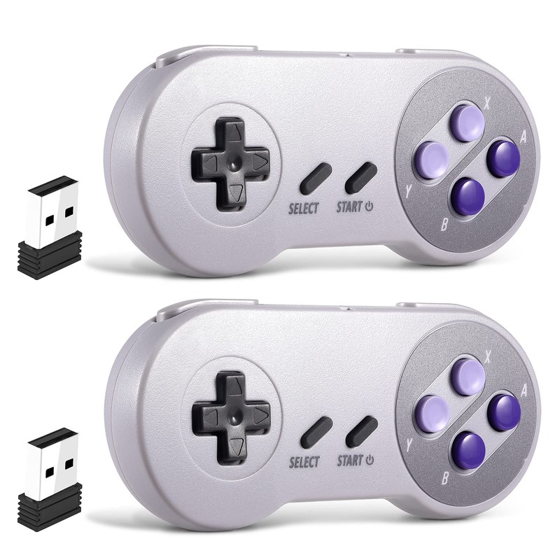 SAFFUN 2 Pack 2.4 GHz Wireless USB Controller Compatible with SNES Games, Retro SNES PC Controller for Windows PC iOS MAC Linux Raspberry Pi Retropie OpenEmu Emulator (Plug & Play) (Rechargeable)