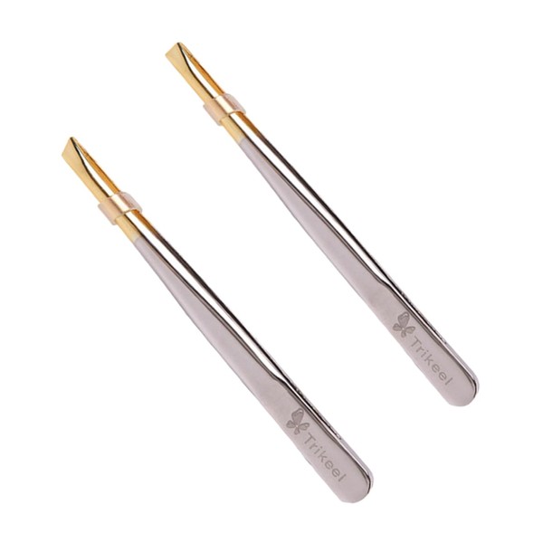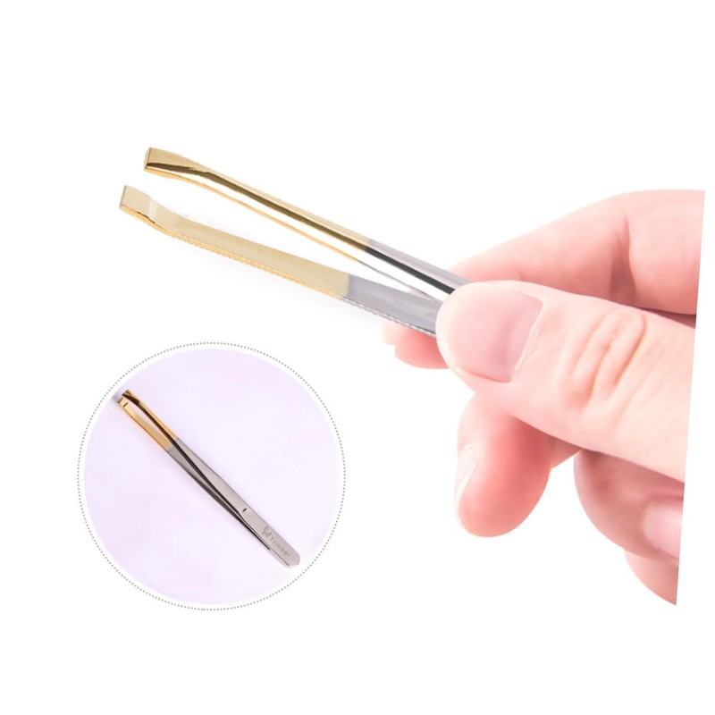 SAFIGLE 1set Electroplated Stainless Steel Eyebrow Tweezers Flat Oblique Mout...