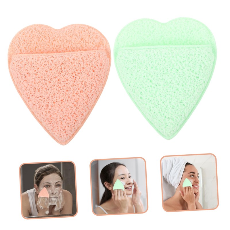 SAFIGLE 2Pcs Facial Exfoliating Sponges Gentle Cleansing Pads for Smooth Complexion Makeup Removal Pore Cleansing for Daily Skin Care Routine Heart Heart
