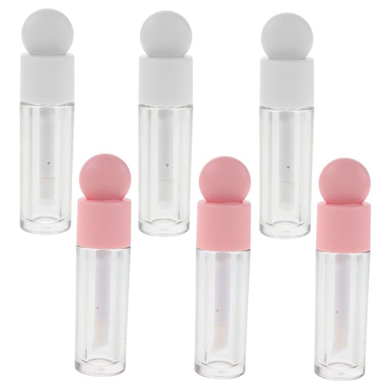 SAFIGLE 6pcs Clear Lip Gloss Tubes with Spherical Brush Empty Lipstick Containers for DIY White Pink Refillable Lip Balm Gloss Bottles for Easy Application