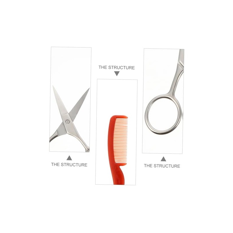 men beard scissor This stainless steel nose hair trimming scissor can evenly trim hair with ease.beard comb kit for barber shop and household DIY.mustache trimming scissors Its distinctive and handle design allows the scissor be comfortably handled and delivering a confident haircut every time.nose hair scissors Meet various demands, sweet and practical present