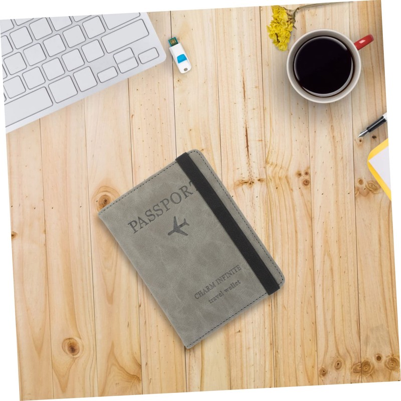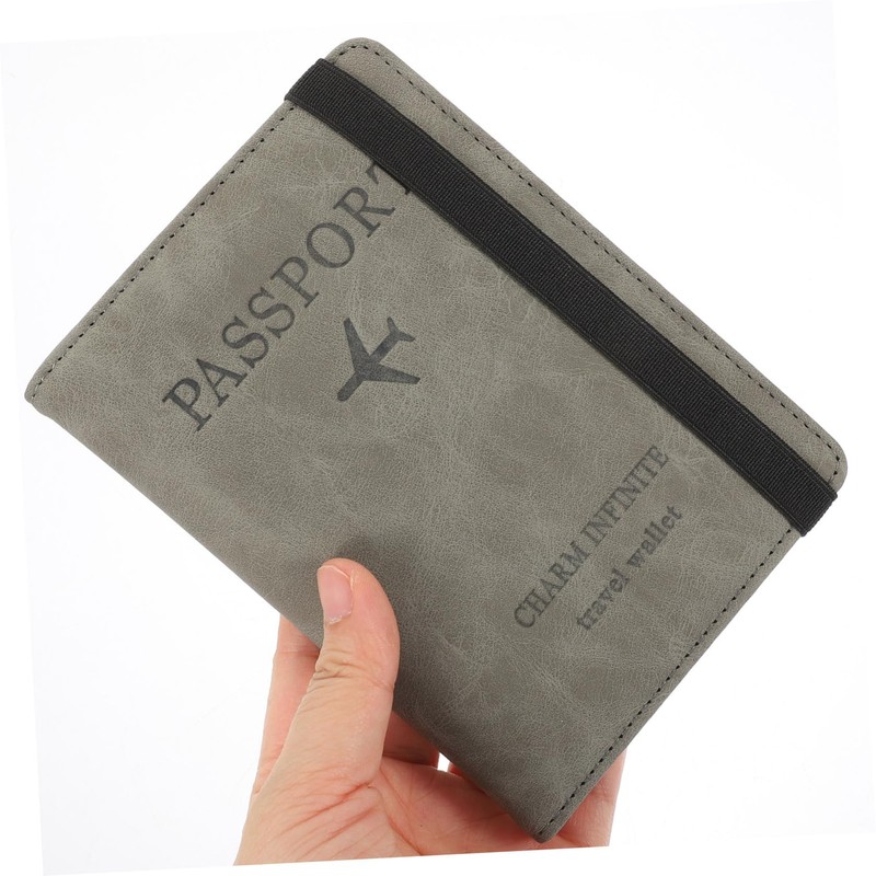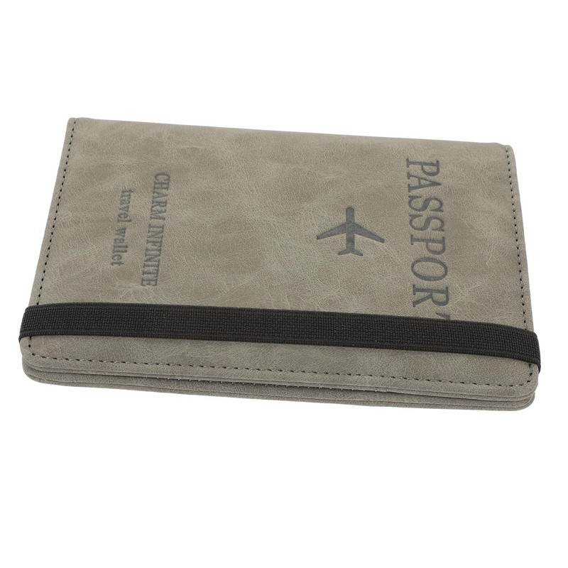 -Color: Grey PU Passport Holder