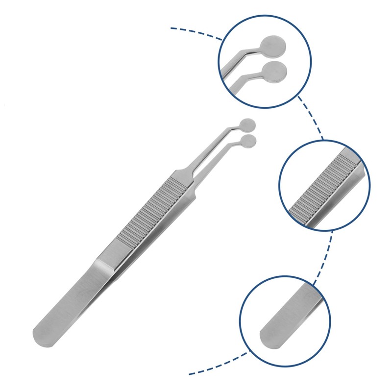 - Stainless steel massage--the smooth paddles are used for mild expression of meibomian glands,Round Head Tweezer