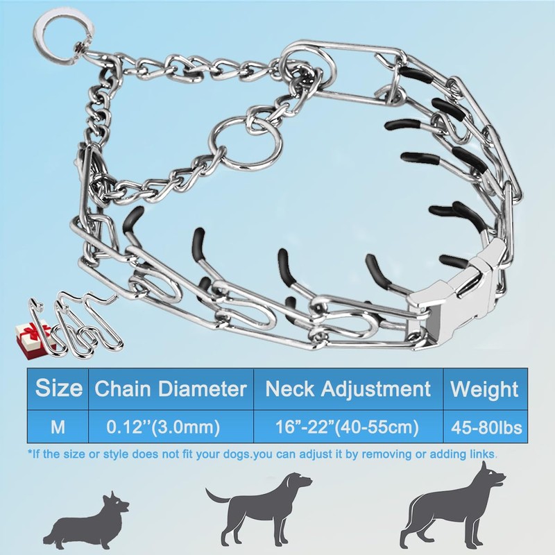 Safiman Classic Prong Training Collar for Dogs, Adjustable Dog Pinch Collar with Quick Release Buckle, No Pull Collar for Small Medium Large Dogs, Extra Link and Caps (M(16-22" Neck, 3.0mm))