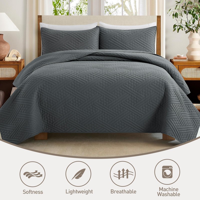 Safonory Quilt Set Full/Queen Size(90"x96", Dark Grey) - Summer Thin Soft Str...