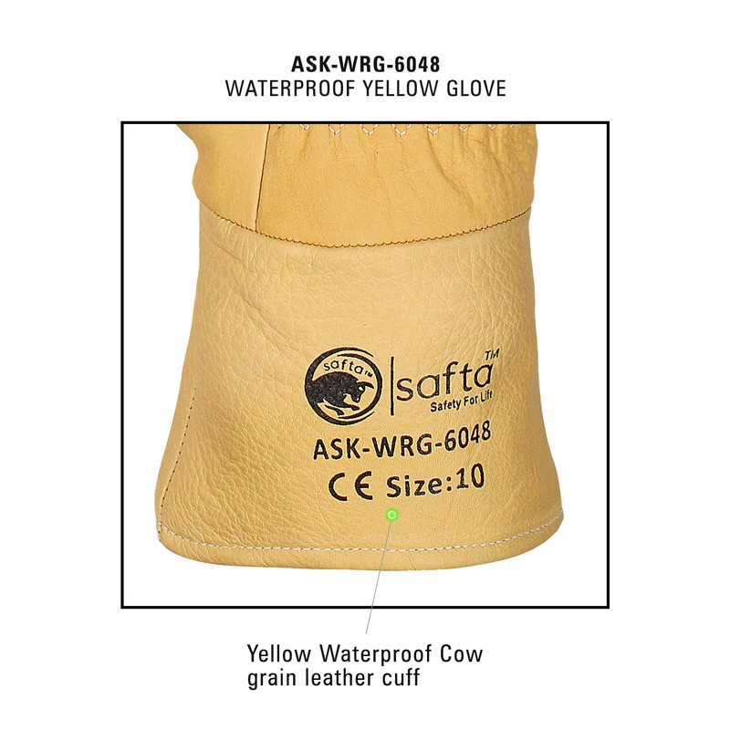 SAFTA Water Proof Work Gloves, Cow Grain leather top Split Leather Cuff, Water Proof Gardening Gloves, perfect for Engineering|Mechanic|Warehouse|builders|Driving|Cleaning work. (XL(10), Yellow)