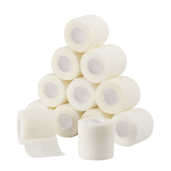 Sagafly Haftbandage Verband Selbstklebender 5cm x 4,5m, 12 Rollen Fixierbinde Selbsthaftend Koh?sive Bandage f1r Erste Hilfe Dog Tierarztwickelband Sport Elastische Binde f1r Handgelenk, F1?e (Wei?)