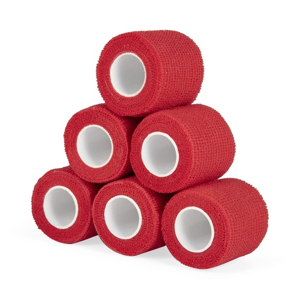 Sagafly Haftbandage Verband Selbstklebender 5cm x 4,5m, 6 Rollen Fixierbinde Selbsthaftend Koh?sive Bandage f1r Erste Hilfe Dog Tierarztwickelband Sport Elastische Binde f1r Handgelenk, F1?e (Rot)