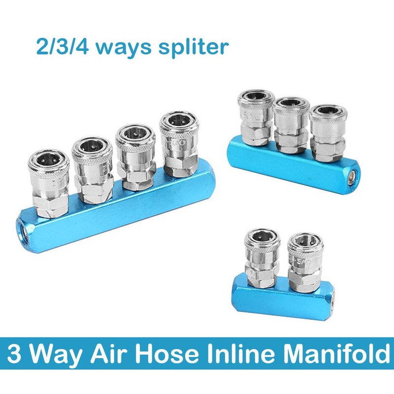 SagaSave Aluminium Air Compressor Splitter, 2-Way Quick Connect Distributor Fitting Air Hose Splitter Coupler