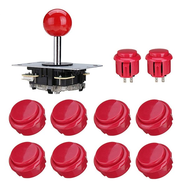 SagaSave Arcade Games DIY Parts Kit, PC Game Controller DIY Kit Including 1 Arcade Joystick 10 Arcade Buttons - Red