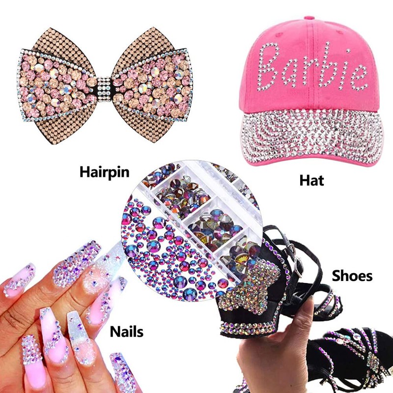 - 【Wide Application】The flat back round rhinestones can be attached to almost any surface, including fabric, plastic, metal, etc. Perfect for decorating your phone cases, glasses, cards, bags, clothes, nail art, shoes, boxes, pens, furniture, crafts, greeting cards and more.