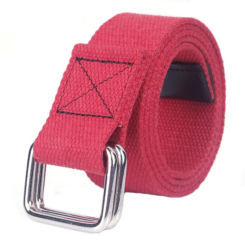 SagaSave Unisex Canvas Belt, Adjustable Casual Webbing Belt with Double Ring Buckle, 110CM Elastic Belt for Jeans, Red, 110