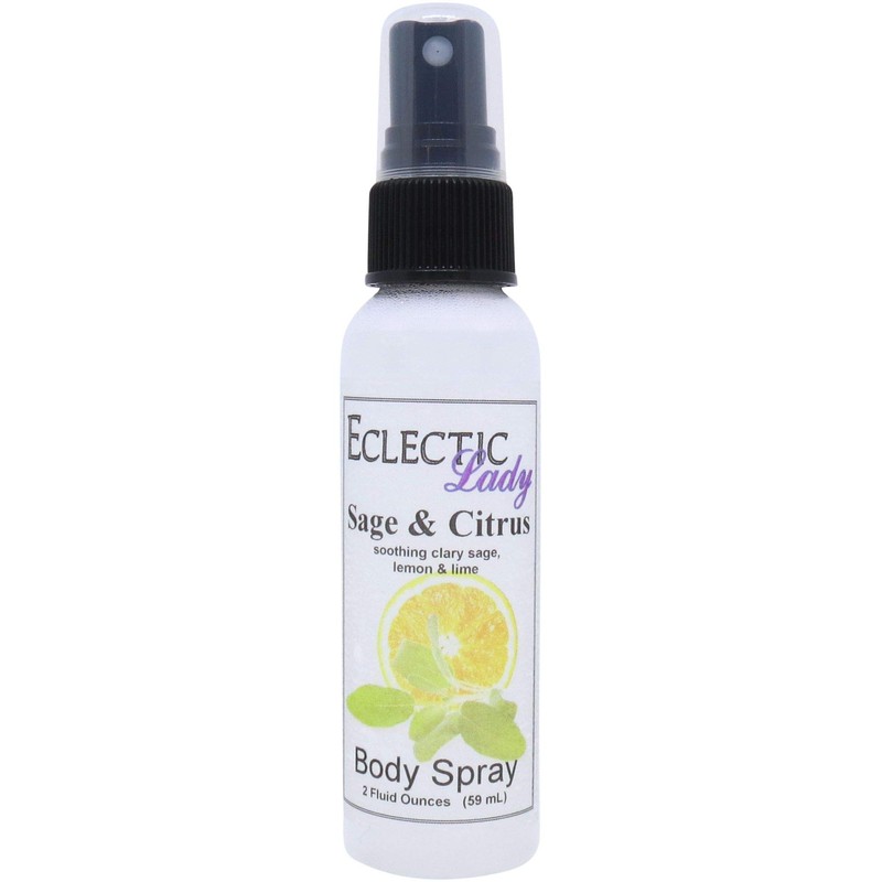 Sage And Citrus is a soothing blend of clary sage, lemon, and lime. This fragrance is phthalate free. Our body spray adds a little bit of moisture to your skin along with a light fragrance. Our Double Strength formula contains double the fragrance of our original body sprays for people who like a stronger body spray. All of our products are made to order. To avoid leakage in transit, Eclectic Lady tapes all caps on our sprays and places each bottle into it's very own reclosable bag.