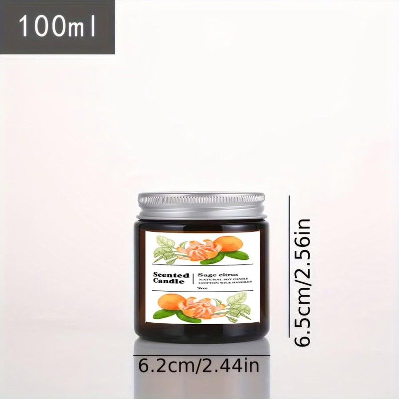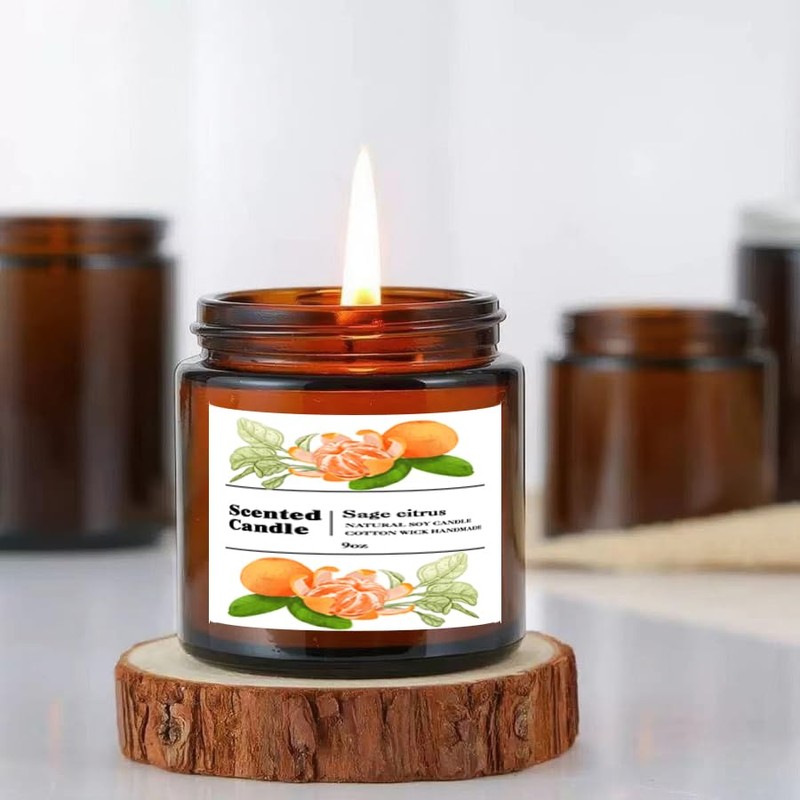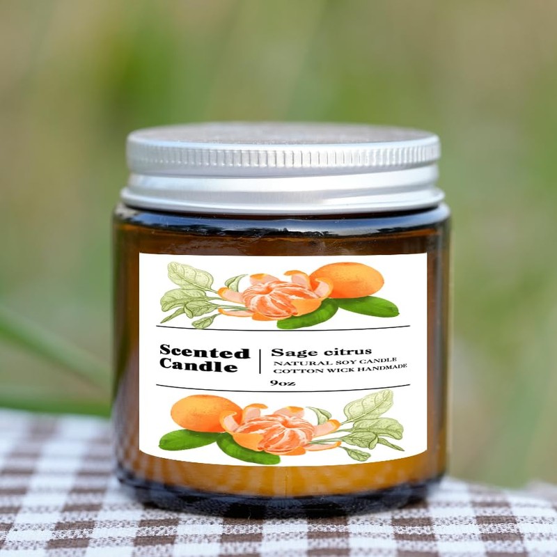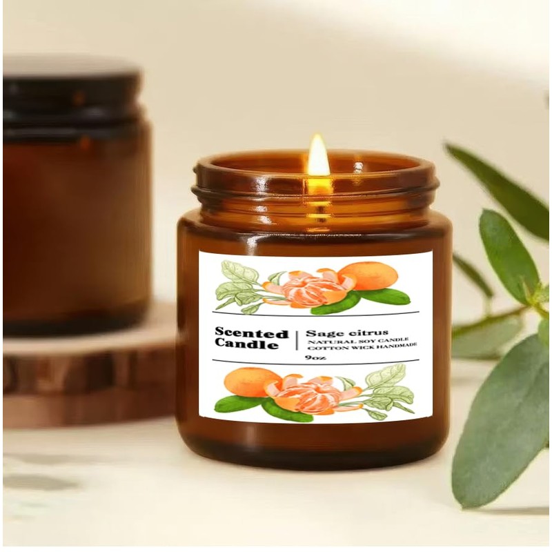 Sage Citrus Scented Candle | Fresh Herbal-Citrus Blend | 50-Hr Clean-Burning | Brown Glass Jar 9oz