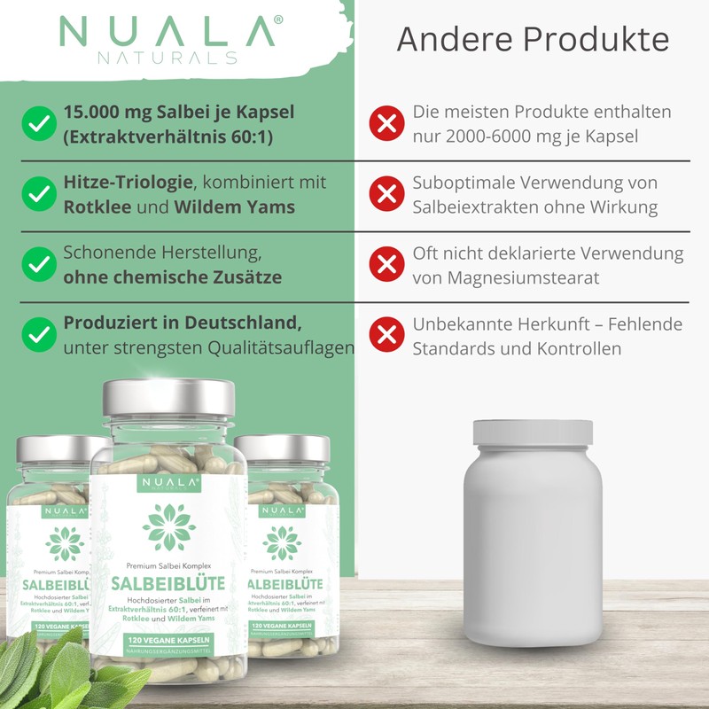 - What makes sage flower so special? Thanks to a special extraction process, we achieve an exceptionally high extract ratio of 60:1. This means that 250 mg extract corresponds to 15000 mg sage per capsule. This high concentration ratio is one of the highest on the market.