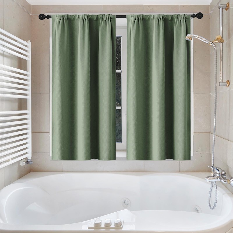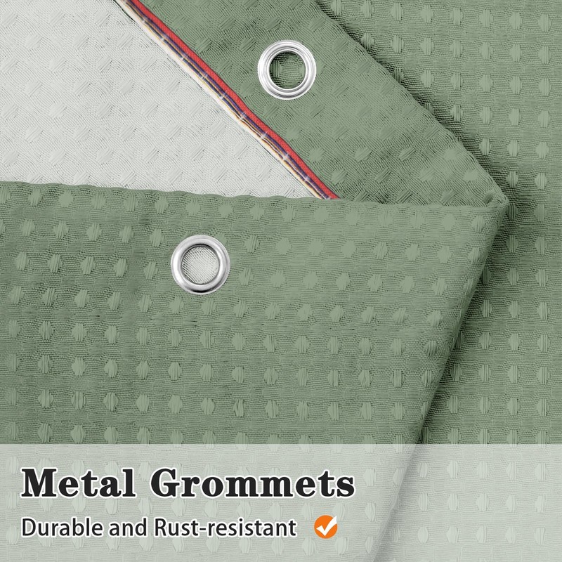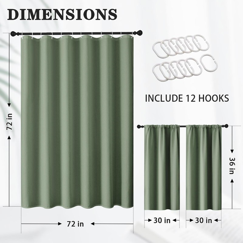 Sage Green Waffle Textured Cloth Shower Curtain Set, Modern Solid Bathroom Window Waterproof Shower Curtains for Bathroom Decor