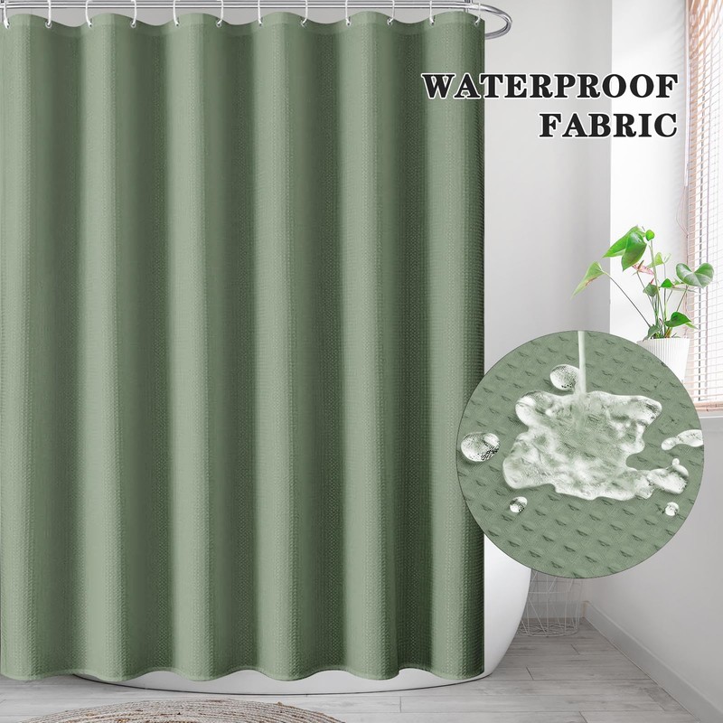 Sage Green Waffle Textured Cloth Shower Curtain Set, Modern Solid Bathroom Wi...