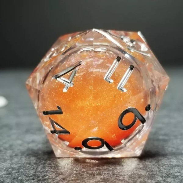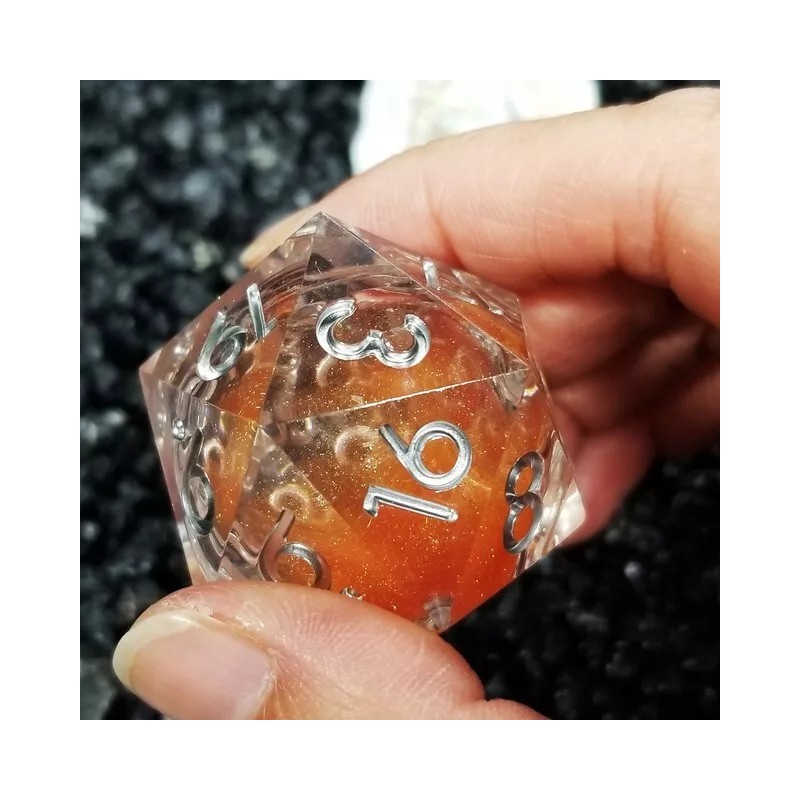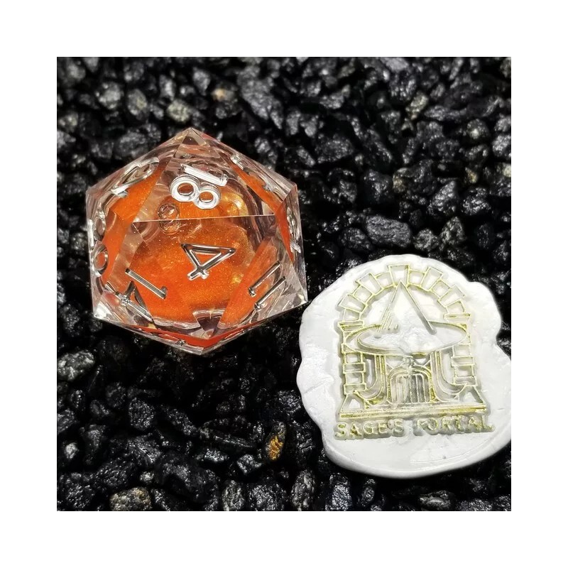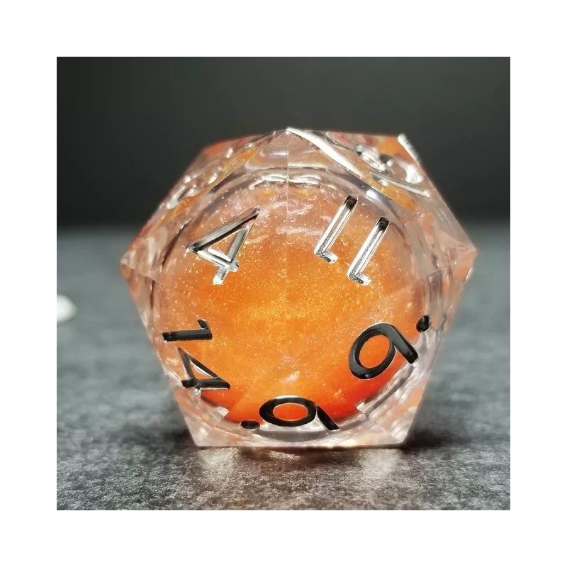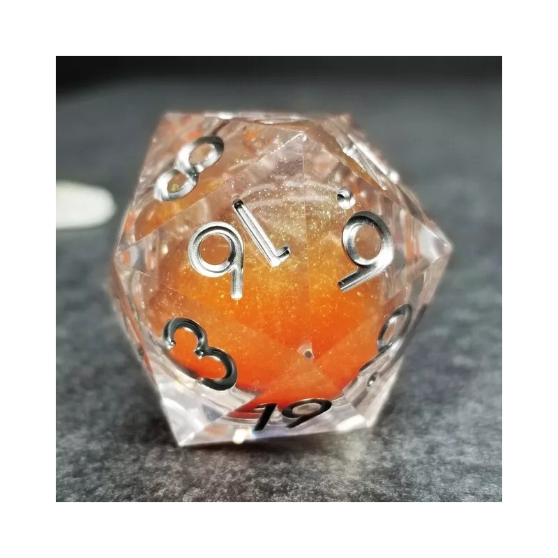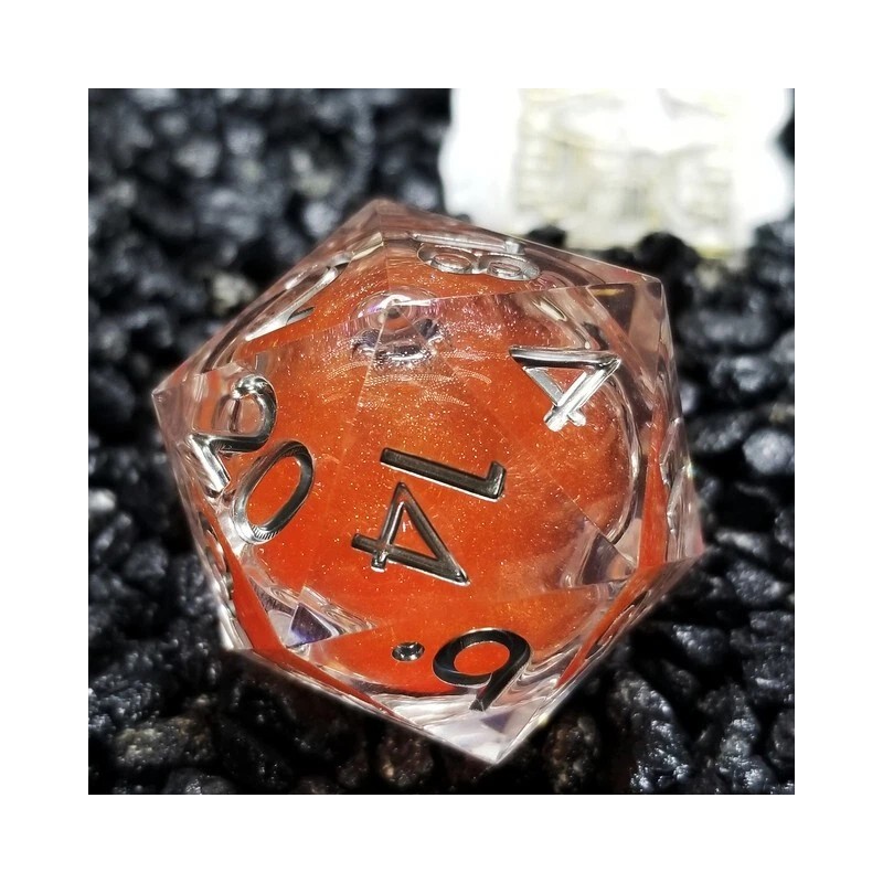 Sage's Fiery Souls - Orange 33mm Liquid-Core D20 Sharp Edge Resin Dice