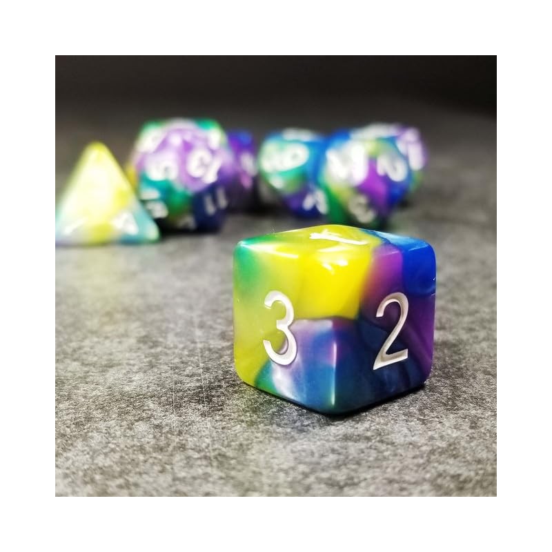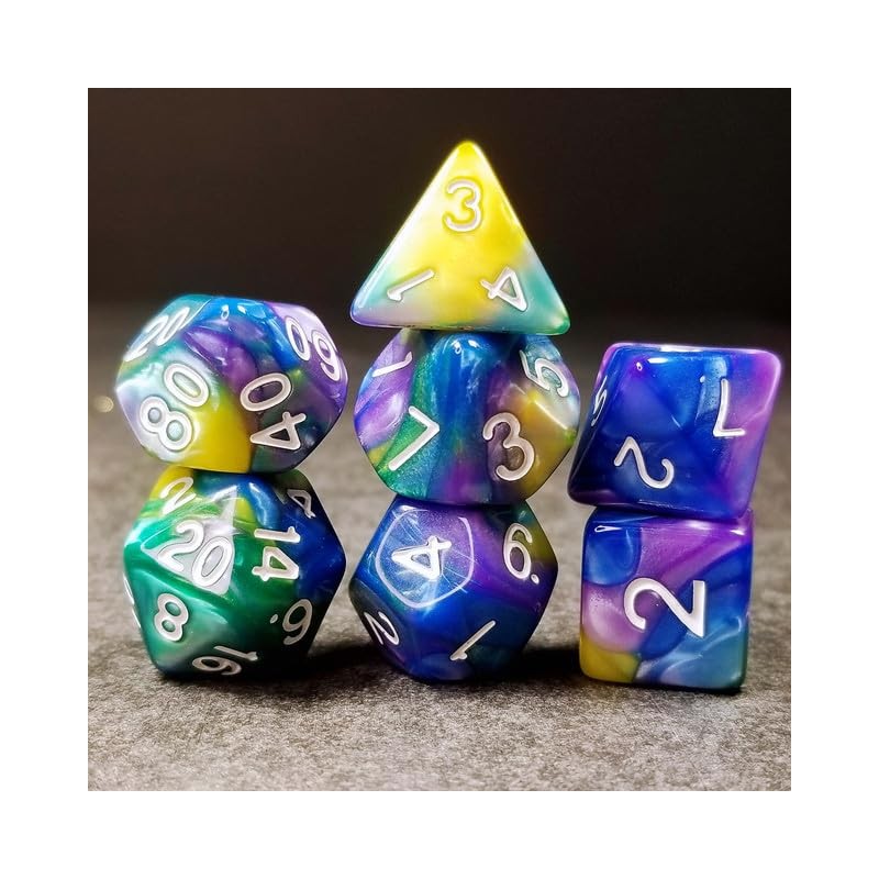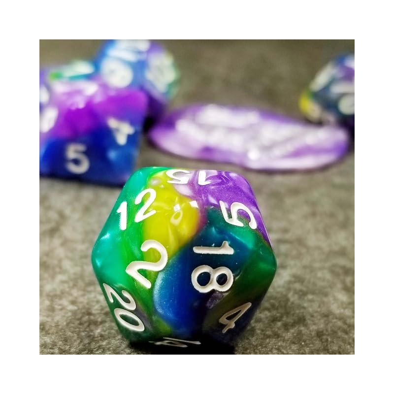 - High Quality Dice: Sage’s Stones Dice Sets feature high quality acrylic with unique designs and vibrant colors to bring style and personalization to your campaign! Level up your TTRPG to a new level with Sage’s Portals collection. This amazing set features purple, blue, green and yellow colors with white numbers.