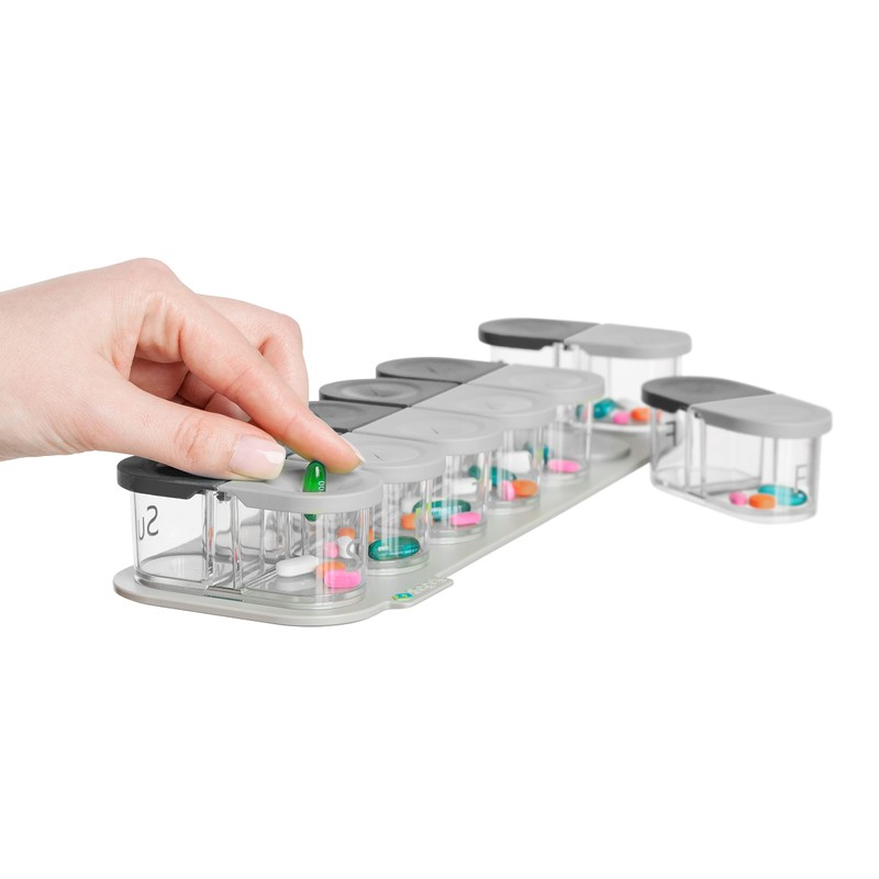 - VERSATILE PILL ORGANIZER - 7 day weekly pill box for AM/PM pills twice a day or as a 14 day pill box if you only take your pills once a day; push the pills from the lid into the container to improve loading accuracy; the flexible lids are easy to open and perfect for people with arthritis and other manual dexterity issues