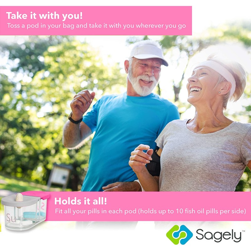 The Sagely SMART Weekly Pill Box Organizer / Vitamin Container solves the challenges people have with traditional pill boxes. The clever design improves the experience of managing pills and vitamins to make it effortless.