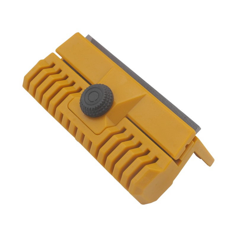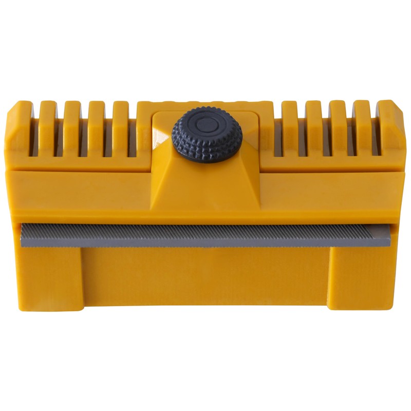 Ergonomically designed plastic holder with flat file (100 mm x 36 mm) made of file steel. Thanks to the specified shape, the correct angle is always worked precisely.