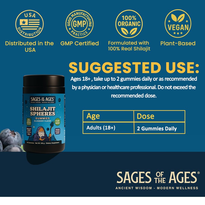 - Inspired by Ancient Wisdom, Backed by Modern Standards: Sages of the Ages brings together timeless ingredients and contemporary formulations. These Shilajit gummies are a reflection of holistic traditions, offered in a thoughtfully designed delivery system with wellness seekers in mind.