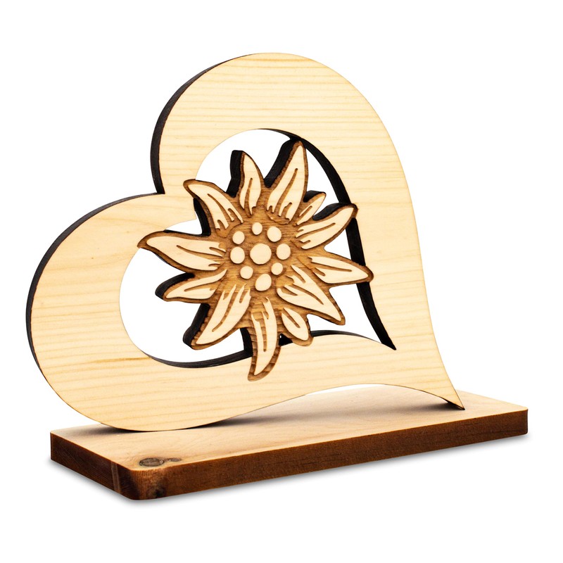 sagl.tirol holzmanufaktur Pine heart on base with engraving (Edelweiß)