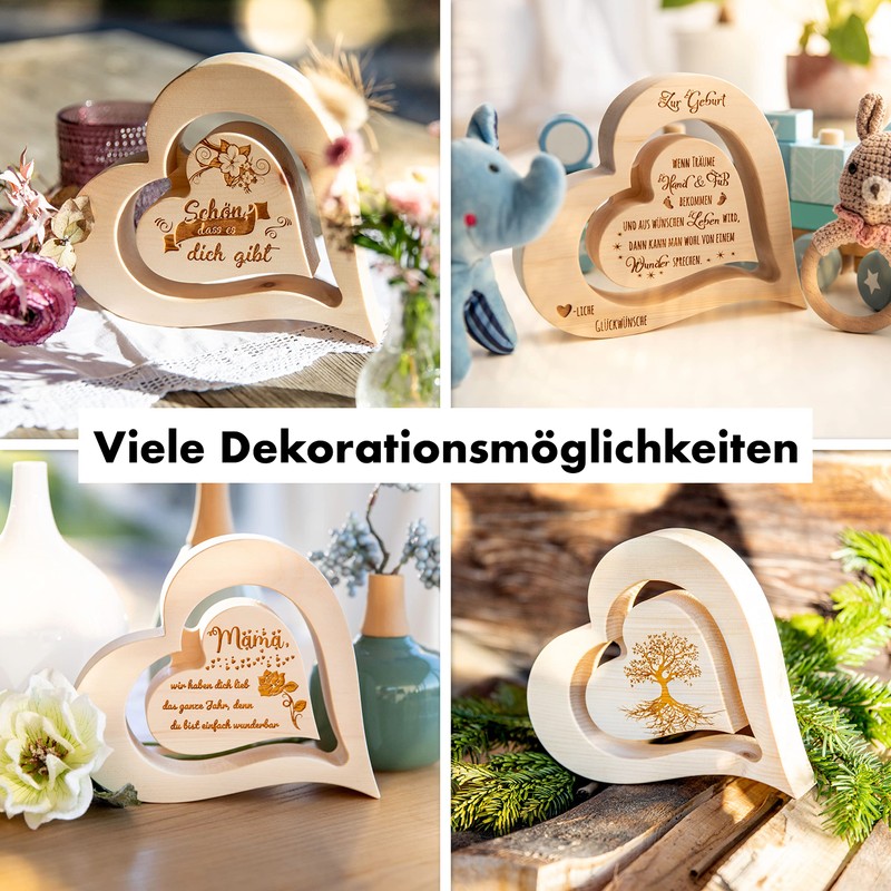 sagl.tirol Pine Heart with Floating Inner Heart and Engraving, 20 cm