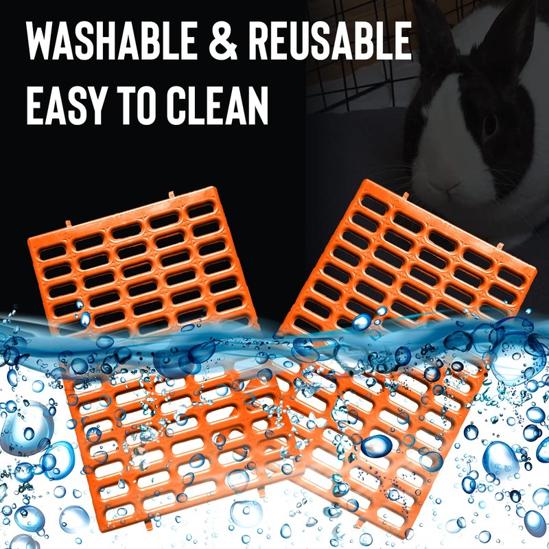 - Crafted from food-grade, hard (yet flexible) ABS plastic, this mat offers unrivaled comfort for your rabbits. Its soft and gentle surface ensures a cozy experience while reducing the strain on their paws. The perfect fit for rabbit cages, it effortlessly integrates into their habitat, providing a dedicated area for relaxation.
