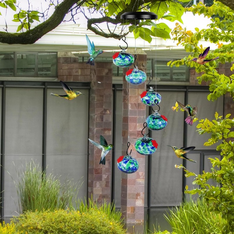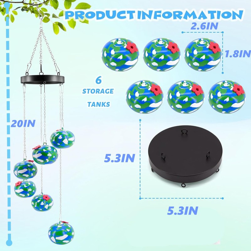 - 【Innovative Wind Chime Design】Our hummingbird feeder features an innovative wind chime design that better complements outdoor scenery and provides multiple feeding points. This hummingbird feeder wind chime is a unique addition to your outdoor decor.