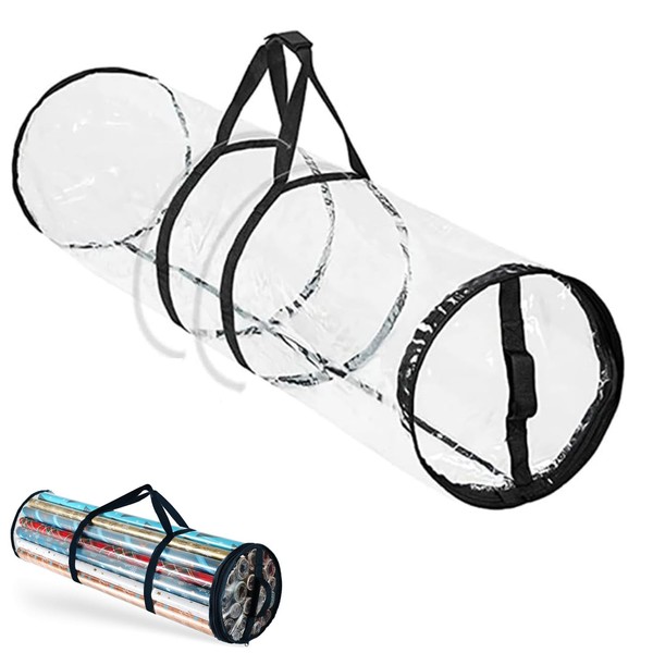 SAHENITEANA Clear Gift Wrap Organizers, Wrapping Paper Storage Bag, Gift Wrap Organizer, Clear Totes with Handles, Fits Up to 20 Standard Rolls(Black)