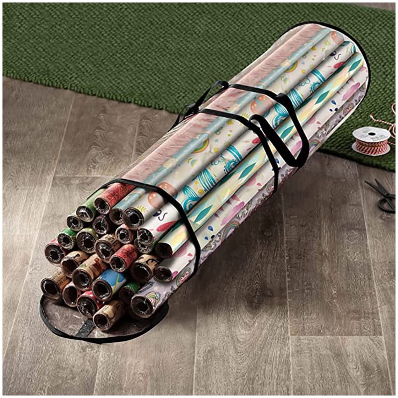 - 【Wrapping Paper Organizer】Round and slim, these Christmas wrapping paper storage bags will help you organize your gift wrap papers and save space in one. They can fit under the bed or on top of shelves or store upright on tight spaces.