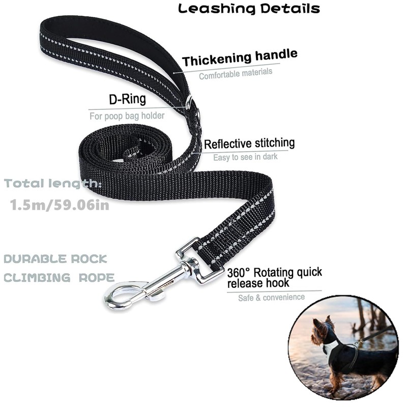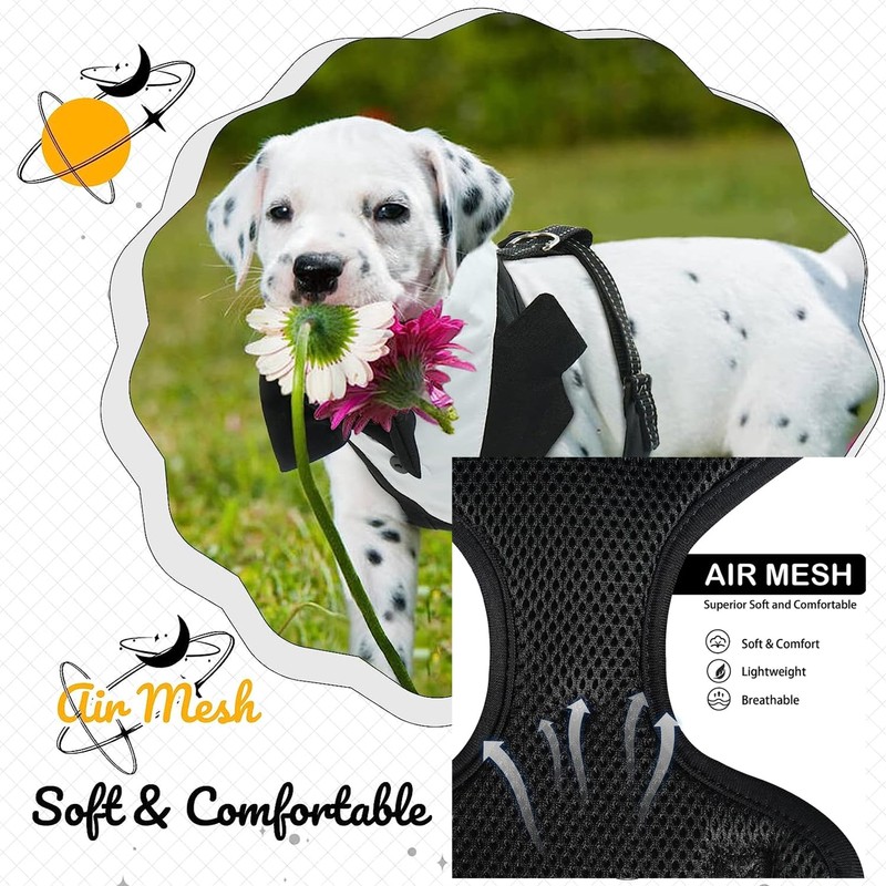 Comfortable and Breathable: The dog harness is made of breathable mesh material, which is lightweight and moisture-resistant, making it comfortable for dogs to wear in any season.