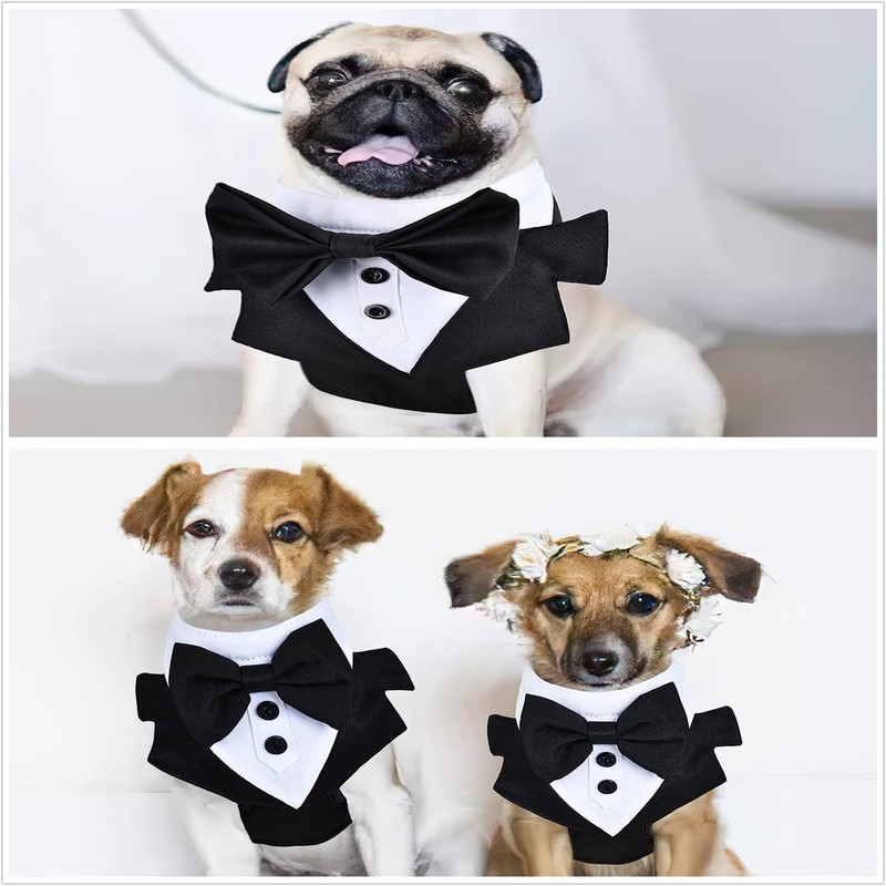 - 【Formal Dog Costume】Black and white tuxedo style dog vest design with elegant bow tie. This dog hook tuxedo collar is not only suitable for weddings, but also suitable for birthdays, Valentine's Day, Christmas parties and other festivals. Make your pooch look like a gentleman on these important occasions with this formal dog harness costume.