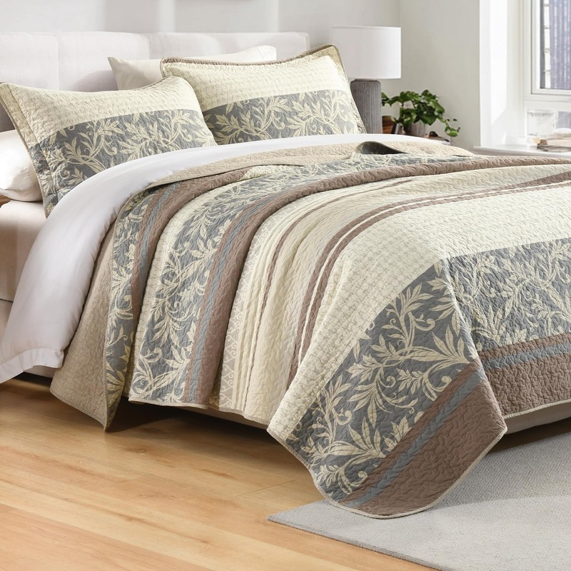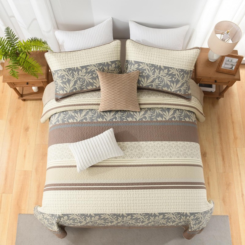 - [Widely Applicable and Decorative] - This reversible quilt set in classic colorway designed with brown/beige/gray makes your room bright and cozy. This decorative quilt set can also easily match the decor of your bedroom, living room, master room, guest room, study, dorm and RVs