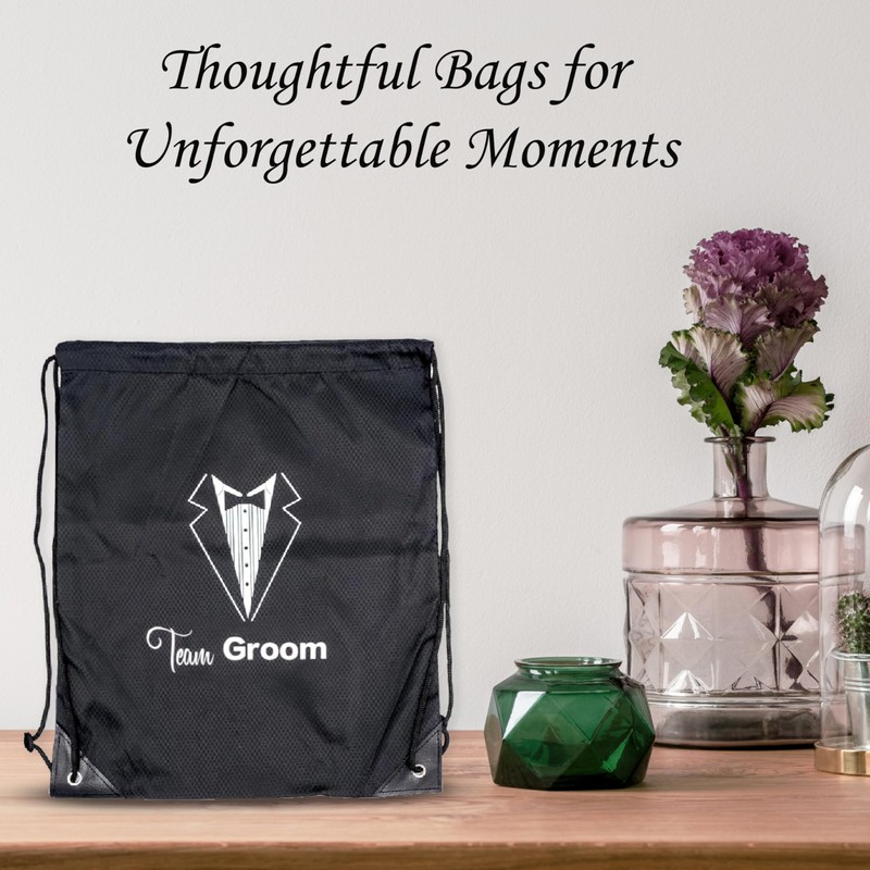 • This unisex drawstring bag is not only functional but also a thoughtful keepsake for the Team Groom, serving as a memorable token of appreciation. Designed with durability and style in mind, it’s suitable for gym trips, travel, or daily use beyond the wedding day.