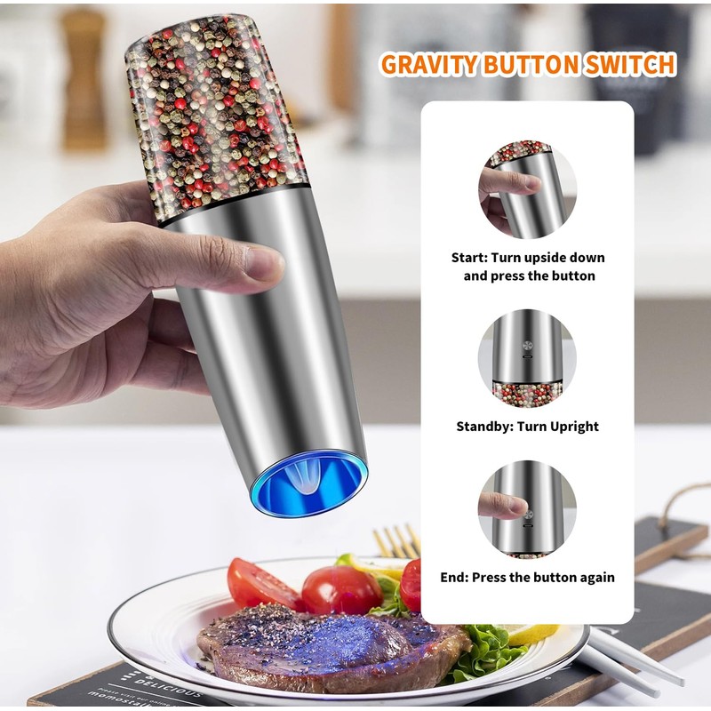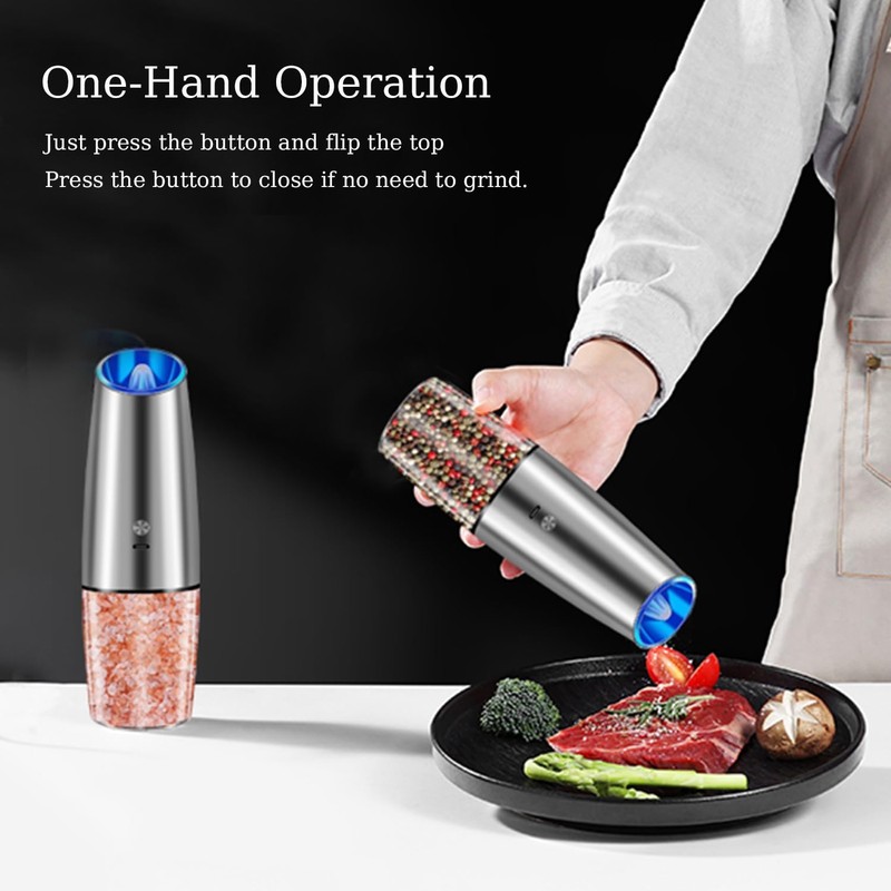 • Blue LED Illumination - Elevate your dining experience with our pepper mills adorned with a soothing blue LED light. Activating automatically during use, it provides a clear view of your seasoning distribution, preventing over-seasoning mishaps. Indulge in a more precise and visually appealing dining ambiance with our electric grinder set.