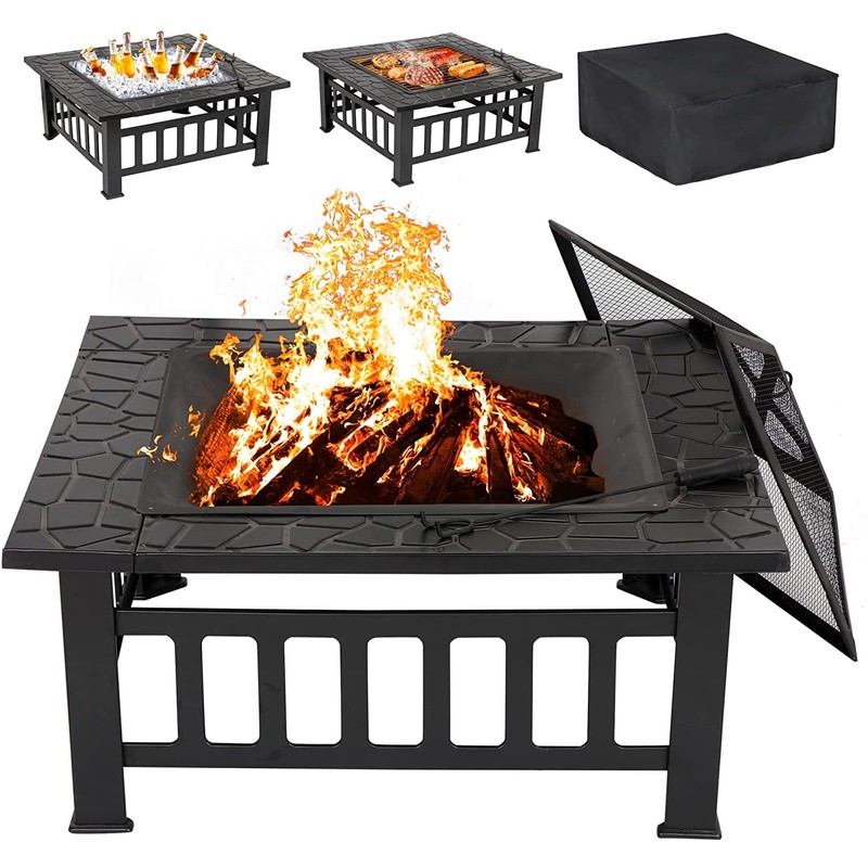 Saicool Outdoor Fire Pit is made from high-quality steel mesh and strong frame. It is a garden stove brazier and built in square shape for stability. The sturdy design with special pattern makes it a perfect choice for warmth, BBQ and cooling drinks and food in garden/patio/ backyard.