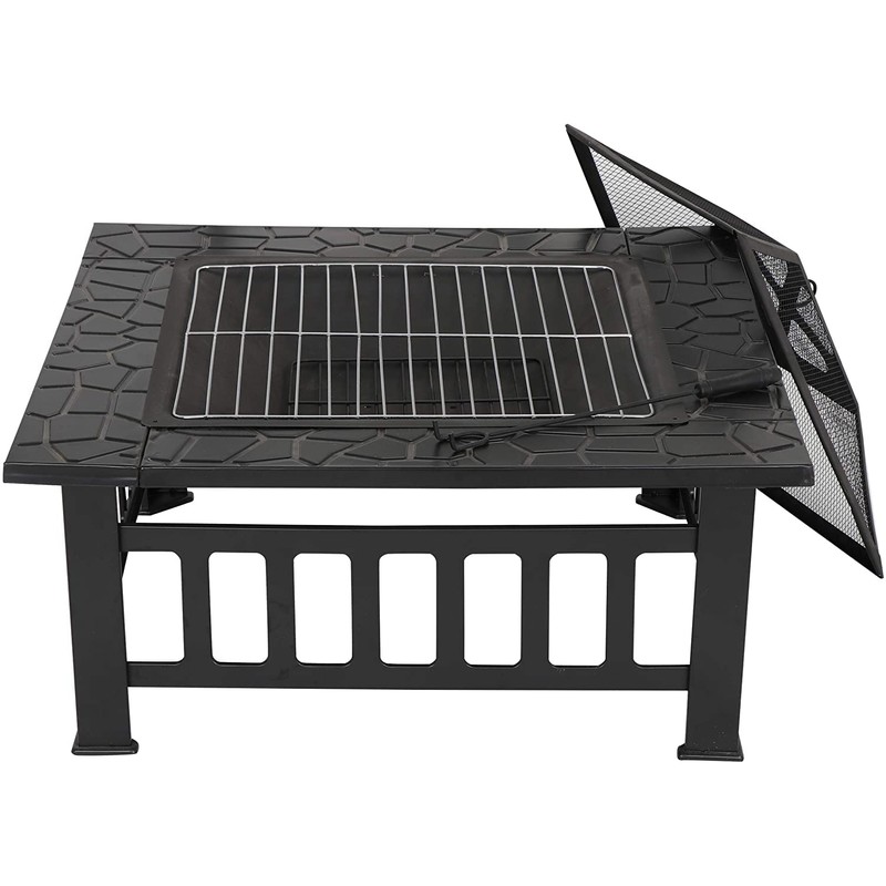 Saicool Outdoor Fire Pit 32-inch Wood Burning Pit Square Metal Firepit with Spark Screen Cover and Fire Pit Poker for Outdoor Camping Backyard Heating Garden Picnic and Patio Bonfire