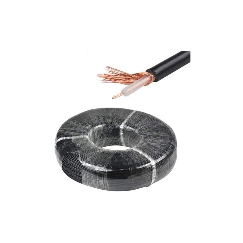 - Material: Conductor interior: Cobre desnudo | Aislamiento: PE sólido | Conductor exterior: Cobre estañado Bried | chamarra: PVC