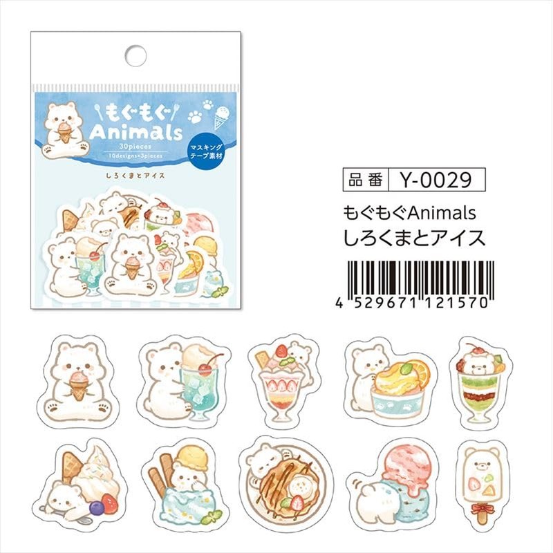 SAIEN Japanese Flake Stickers, White Bear and Ice Cream H4.1 x W3.1 inches (103 x 78 mm)