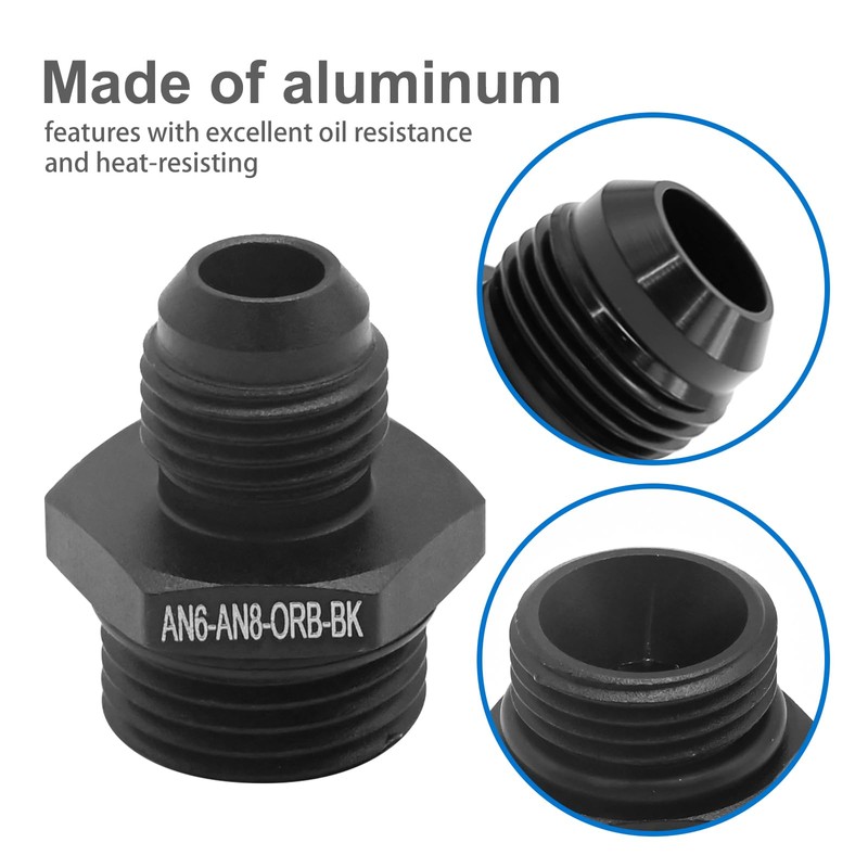 - Adaptability: Capable of transitioning from 6AN to 8AN ORB fittings, with thread sizes of 9/16-18 UNF and 3/4-16 UNF, ensuring a secure and leak-free connection