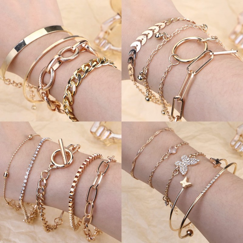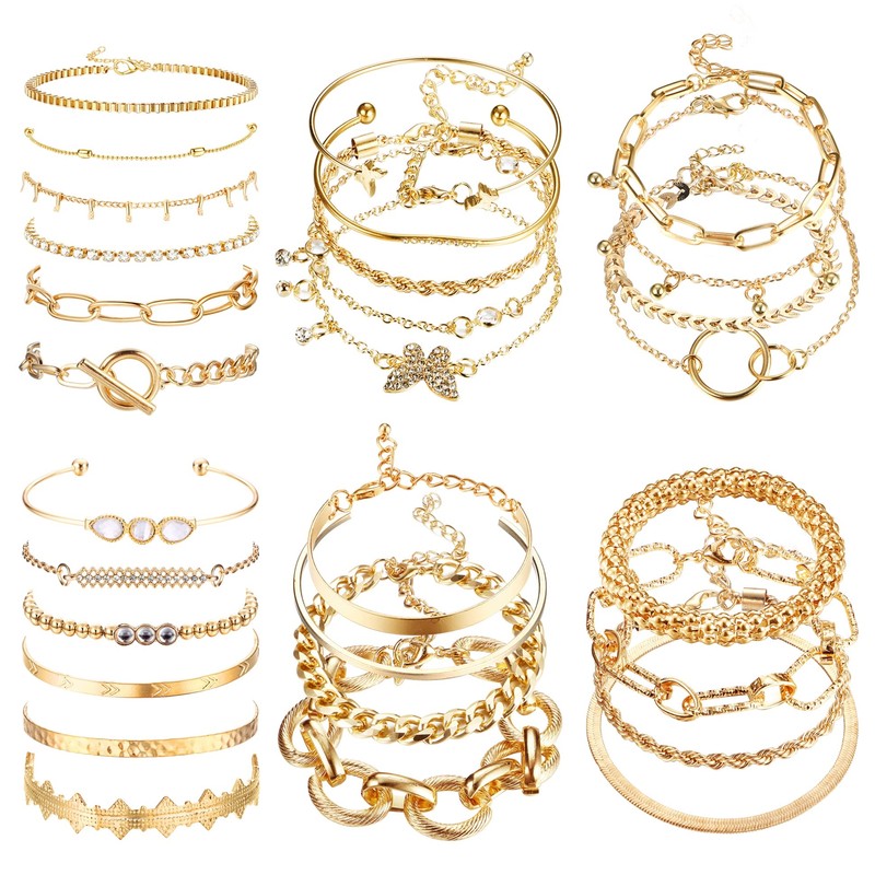 • 【Gold Bracelet Set】Well-chosen trendy gold bracelets anklet set, 6 pack chain and open cuff bangle bracelet = 27PCS total,includes cuban chains, figaro chain bracelet, pearl bracelets, paperclip link and more,27 different styles give you a wide range of options for your outfit,good value for money.