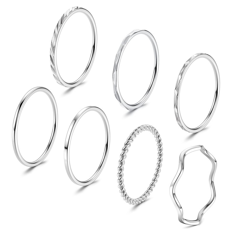 - 🌟【Stackable Ring For Women】: You can get 7 pcs 1 MM daily thin ring: simple Plain ring, unique pattern ring, twist ring, wave ring,etc. Fashionable and simple design, enough for you to stack and wear.