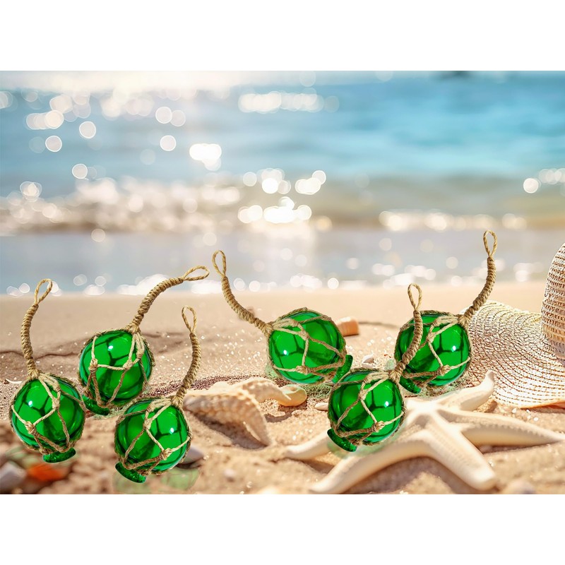 SAILINGSTORY Glass Fishing Float Buoy Ball Nautical Coastal Beach Ornaments for Christmas Tree 2" Green Set of 6 Pack